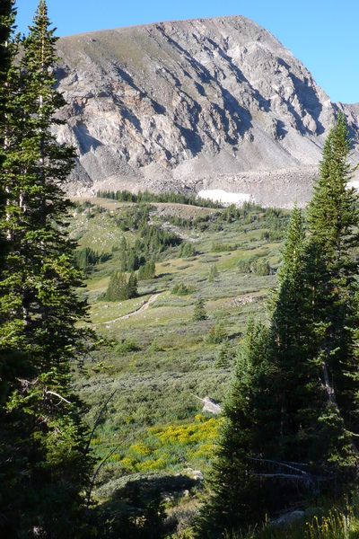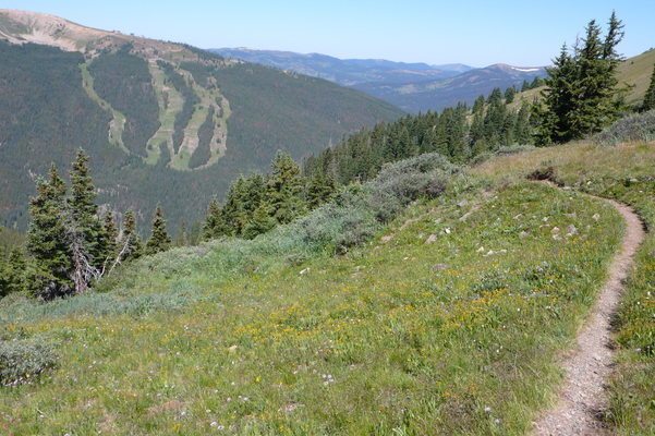 The route then followed the Wheeler trail toward Copper Mountain. There were great views of Copper's Resolution bowl. I could even see where I had skied last winter!