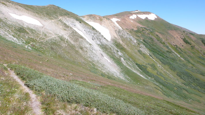 The most amusing part of the run was an encounter with several folks I had met at the hostel where I am staying, The Fireside Inn. They were through-hiking the Colorado Trail. We started around the same time in the morning, but I would be heading north on the trail, and they would be heading south. Somewhere around 12,000' I came running down the trail as they were hiking up. I think they were as amused as I was about running in to an aquaintence in such a remote location.