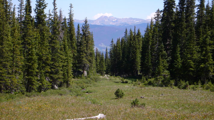 Eventually, I dropped below tree line again. I got to a trail junction 20 miles into my run, I could head four miles north to Frisco, and take the bus home, or I could head six miles straight back to Breckenridge. I was at the edge of the distance that I had intended to run, but I was having such a good time, and the difference was so small, that I took the Breckenridge option.
